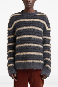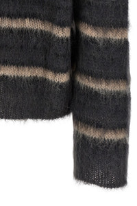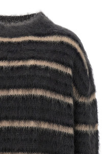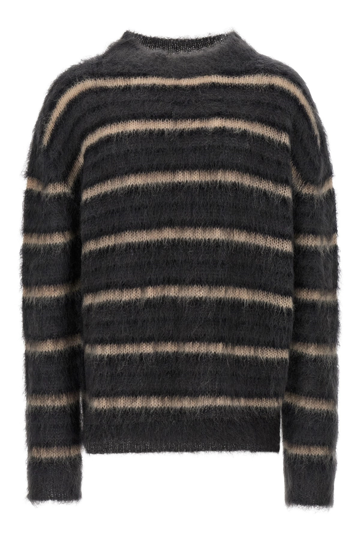 cod. GCMG0161Q0UFU174RGN77 Brushed mohair sweater with multicolor gauze stripe pattern, crew neck, long cuffed sleeves. Color: Gray Size & Fit: Comfort fit Composition: 80% WM 20% PL Made in: Italy