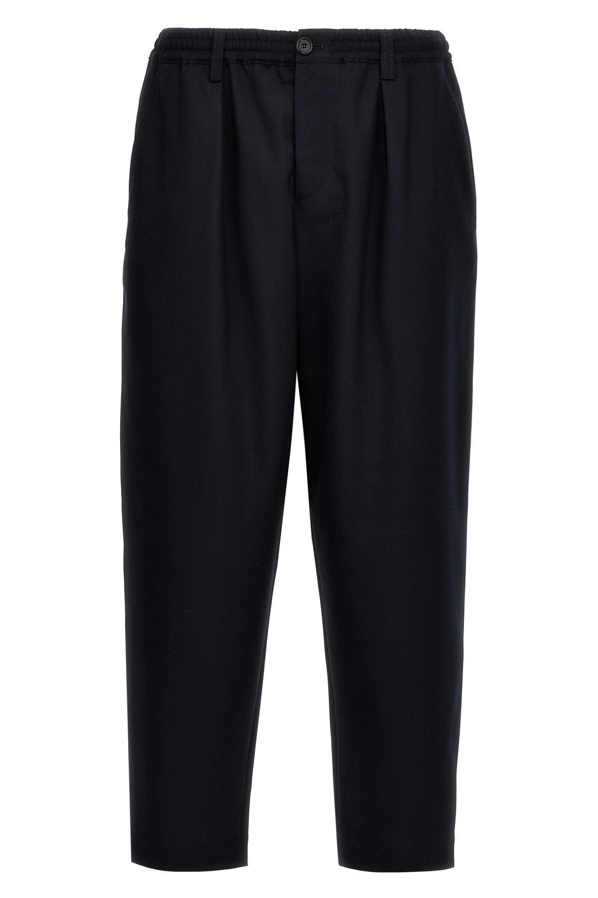 cod. PUMU0017U4TW83900B99 Tropical wool cropped pants with button closure, elastic waistband, pockets. Color: Blue Size & Fit: true to size fit Composition: 100% virgin wool