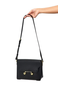 cod. SBMP0195U0P694800N99 'Trunkaroo' medium leather shoulder bag, magnetic flap closure, front metal detail, adjustable and removable shoulder strap. Color: Black Size & Fit: W 23 x H 17.5 x D 10 cm Composition: 100% calfskin leather (Bos Taurus)