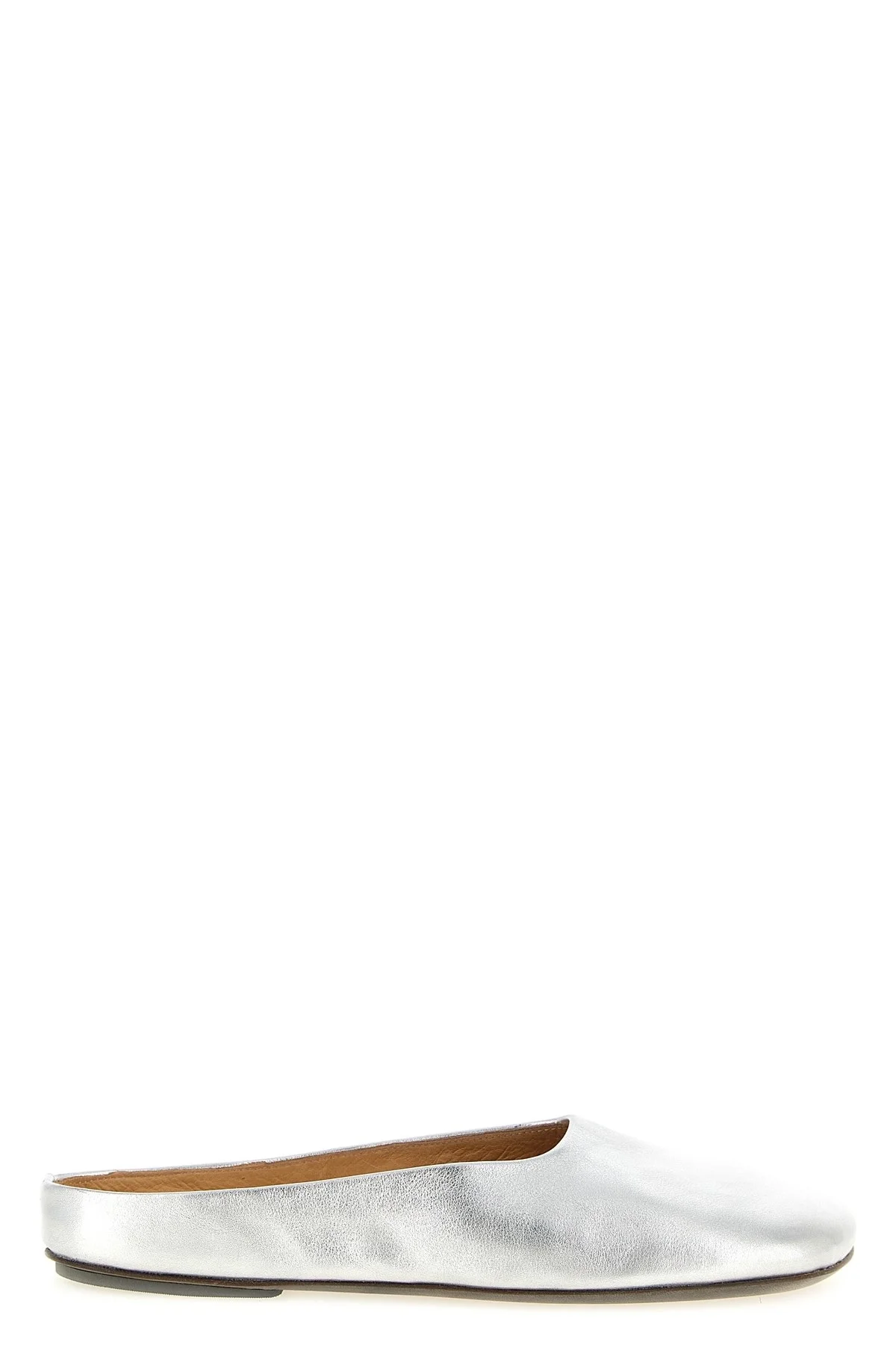 cod. MW8431P03261L 'Bama' rag laminated leather mules, square toe with rounded corners, leather sole with rubber heel. Color: Silver Size & Fit: EU WOMEN Composition: 100% calfskin leather (Bos Taurus) Made in: Italy