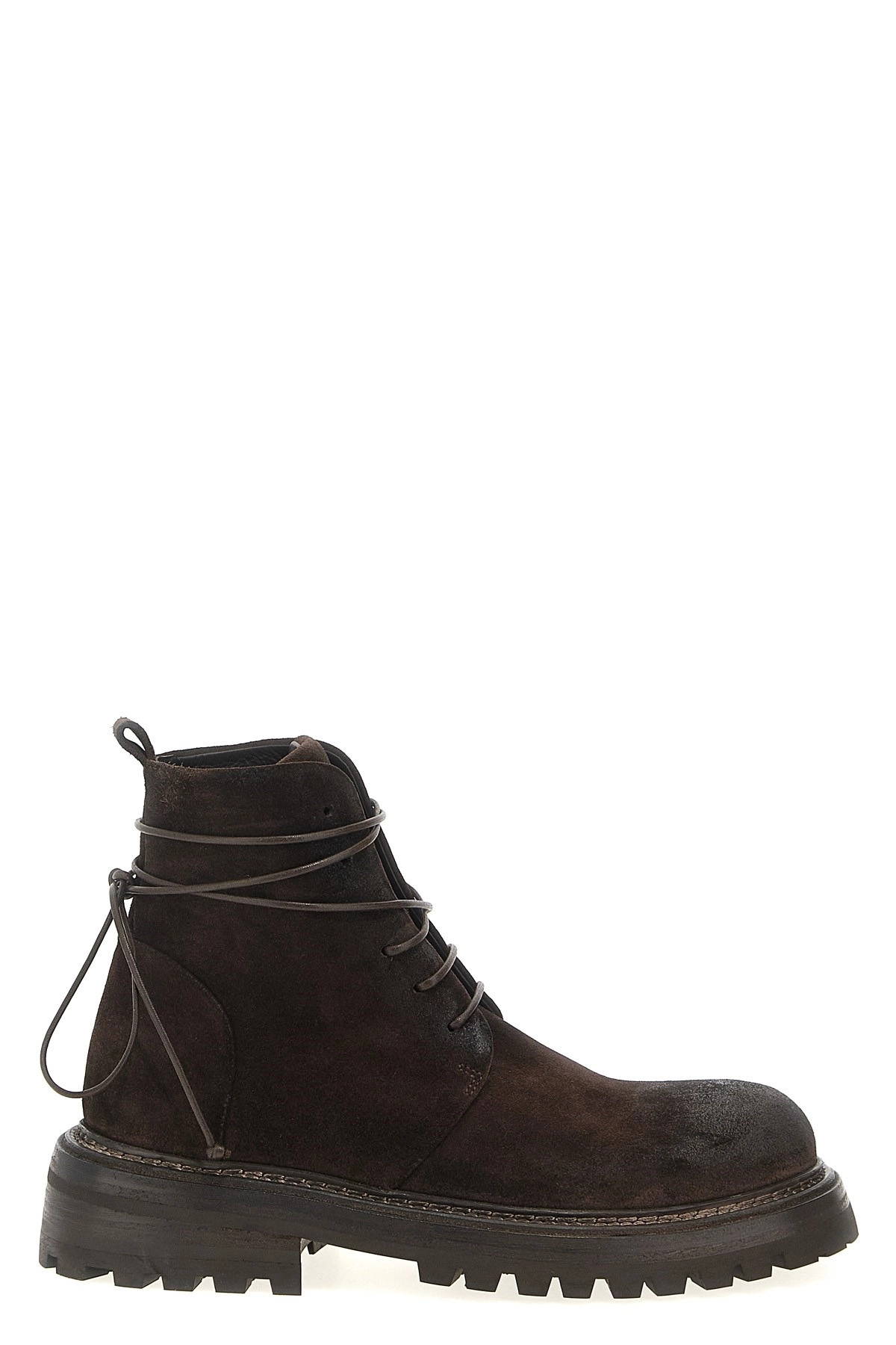 cod. MM4025P024460 Carrucola' suede used-effect reverse leather boots with rounded toe, front laces, and hand-dyed leather and rubber multilayer sole. Color: Brown Size & Fit: EU MEN Composition: 100% cotton Made in: Italy