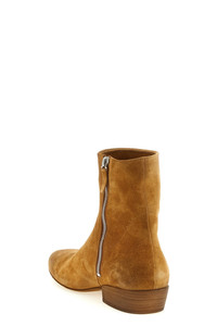 cod. MM4750P024181 'Granblocco' ankle boot in reverse leather, thin dotted visible stitching on the upper, almond toe, side zip closure, leather-wrapped and hand-colored heel, leather sole. Color: Beige Size & Fit: EU MEN Composition: 100% calfskin leather (Bos Taurus) Made in: Italy