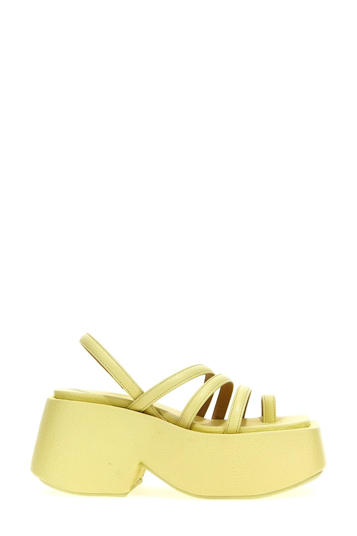 cod. MW6831188807 Zeppo' hammered leather sandals with platform rubber sole and leather lining. Color: Yellow Material: 100% calf leather (bos taurus) Made in: Italy Size&Fit: EU WOMAN Platform: 10 cm
