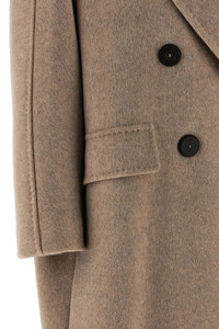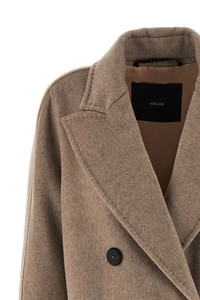 cod. 2521016105600004 'Angus' coat with cashmere, alpaca and wool pile finish and finished with tailored dot, double-breasted style with front button closure, peak lapels with king-stitch basting in common thread, contrast leather undercollar, pockets, long sleeves, cupro semi-lining. Color: Gray Size & Fit: oversized fit Composition: 50% ws, 40% wp, 10% wo Made in: Italy PROMO CODE NOT APPLICABLE