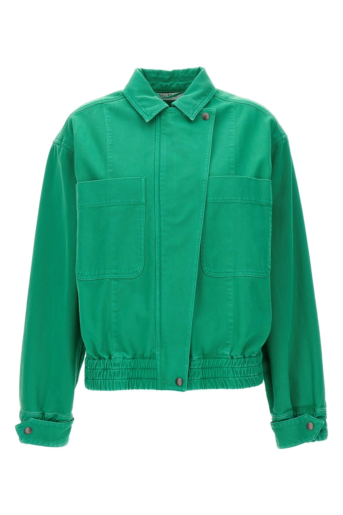 cod. ARTURO015 'Arturo' crop jacket in garment-dyed cotton drill, zip and button closure, pockets, long sleeves with elastic and adjustable cuffs, elastic hem. Color: Green Size & Fit: True to size fit Composition: 100% cotton