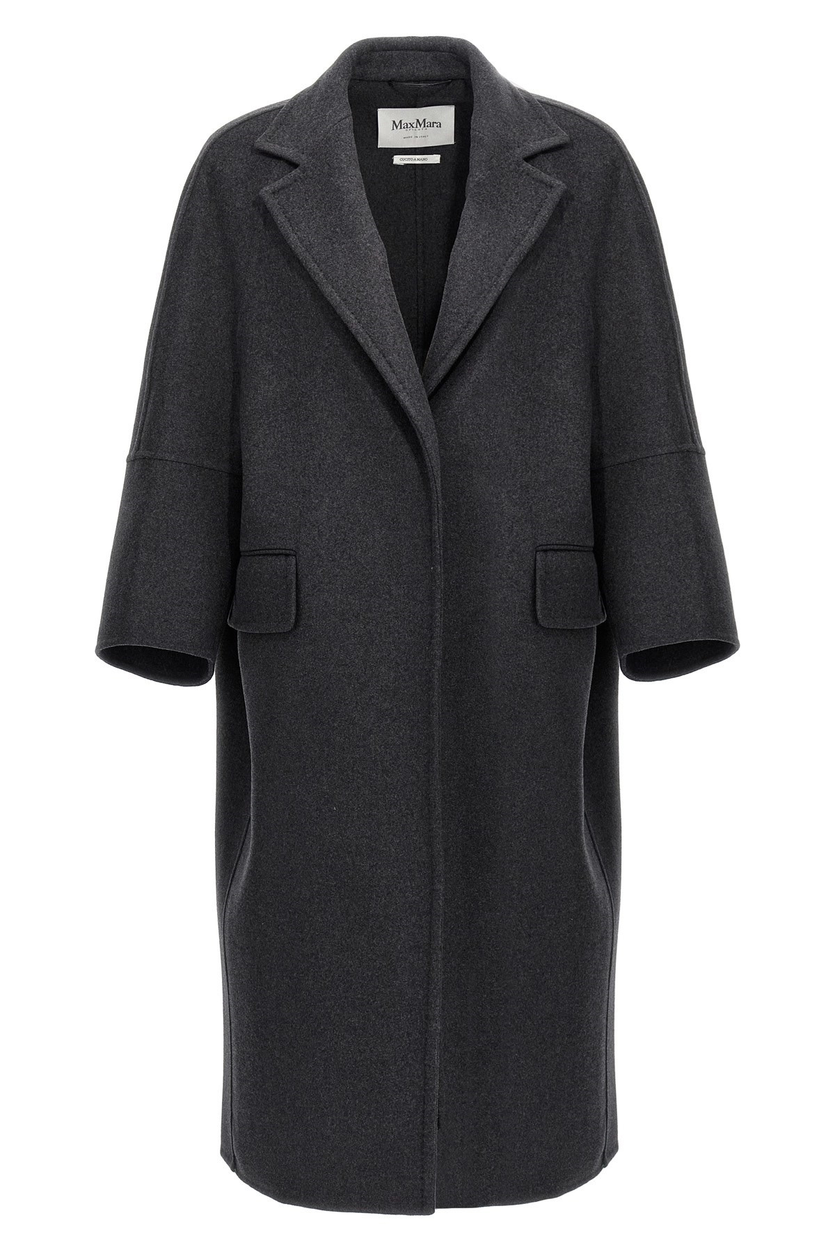cod. ASBURGO003 'Asburgo' melange wool and cachemire cloth coat, unlined, lapel collar with placket, long and wide sleeves, pockets, front opening. Color: Gray Size & Fit: oversized fit Composition: 70% virgin wool 30% cachemire Made in: Italy