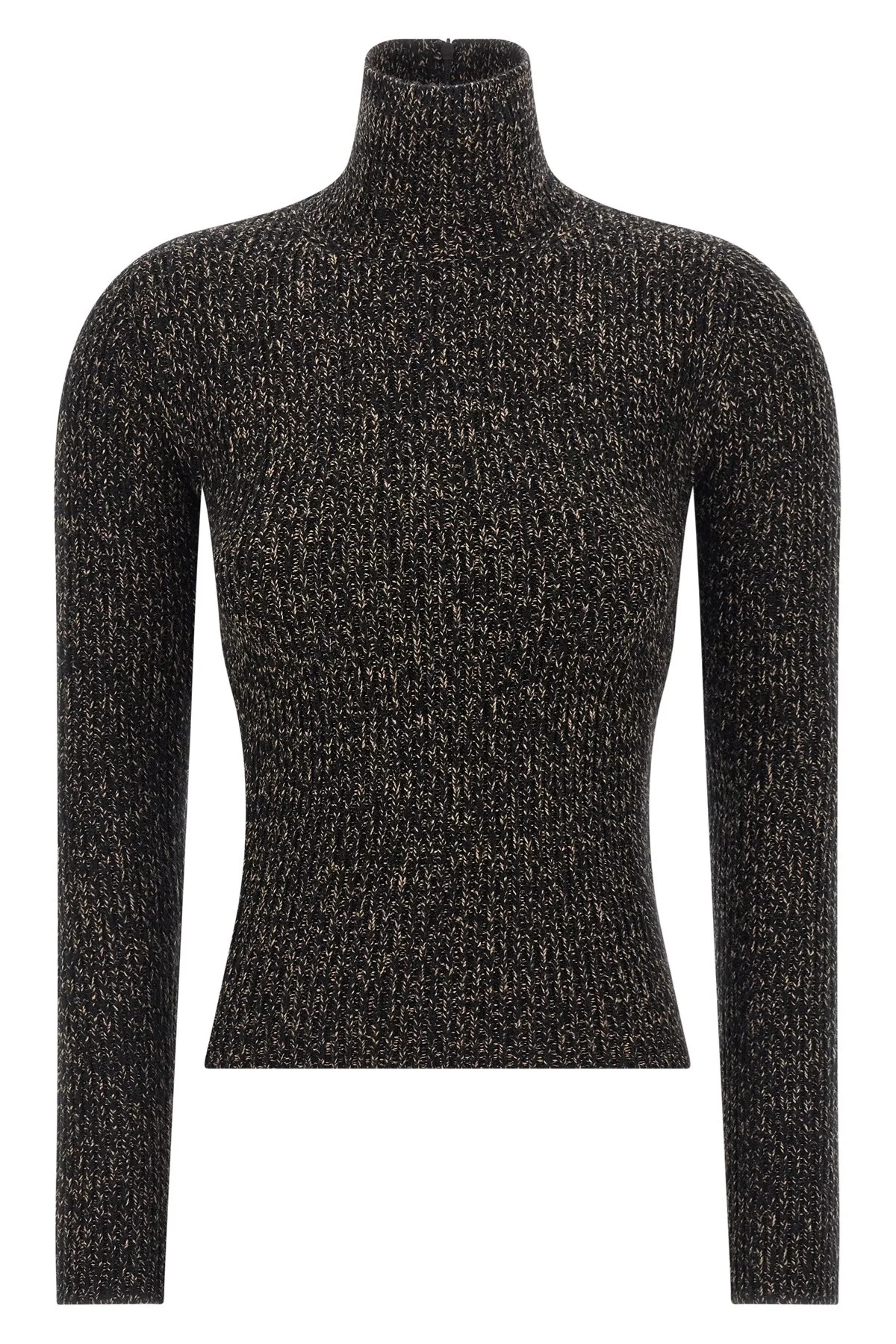 cod. 2521366383600004 'Azulene1234' turtleneck sweater in ribbed wool and cashmere stretch mouline yarn, high neck, long cuffed sleeves, back zip closure. Color: Black Size & Fit: Slim fit Composition: 67% wo, 29% ws, 3% pa, 1% ea Made in: China