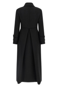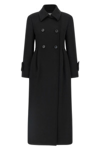 cod. 2521016483600003 'Beati1234' long coat in double drap of baby camel, double-breasted model with front button closure, hourglass silhouette with pincer at the waist, shirt collar, pockets, structured and padded shoulder strap, long sleeves, kissed pleat at the back. Color: Black Size & Fit: true to size fit Composition: 100% camel wool (Camelus dromedarius) Made in: Italy