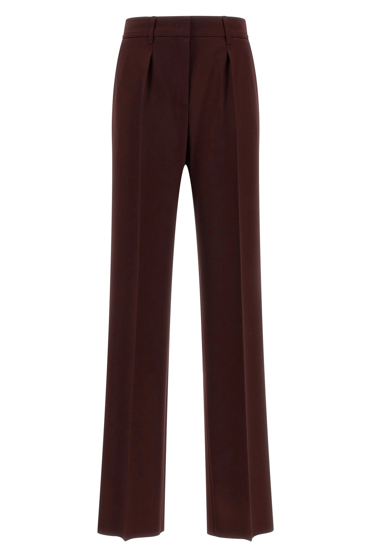 cod. 2521136032600005 'Cannes' pants in pure wool gabardine, pince, stretched pleat, straight leg, high waist, zip hook and front button closure, pockets, back logo tag. Color: Bordeaux Size & Fit: true to size fit Composition: 100% virgin wool Made in: Italy