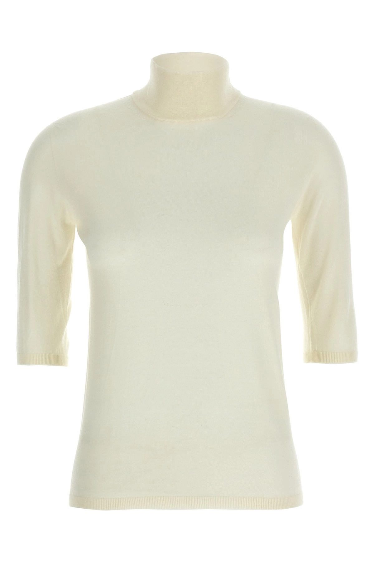 cod. 2511361081600001 'Cecina' turtleneck in shaved wool yarn, high neck, 3/4 sleeves. Color: White Size & Fit: true to size fit Composition: 100% virgin wool Made in: Italy