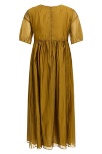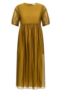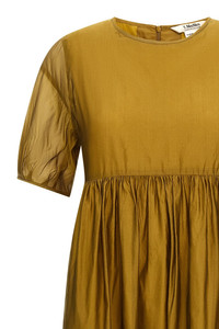 cod. 2529226042600006 'Fatoso' silk blend dress, curled at the waist, lined, crew neck, short sleeves, back zip closure. Color: Yellow Size & Fit: True to size fit Composition: 54% silk, 46% polyester Made in: Tunisia