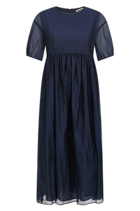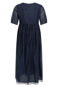 cod. 2529226042600003 'Fatoso' silk blend dress, curled at the waist, lined, crew neck, short sleeves, back zip closure. Color: Blue Size & Fit: True to size fit Composition: 54% silk, 46% polyester Made in: Tunisia