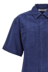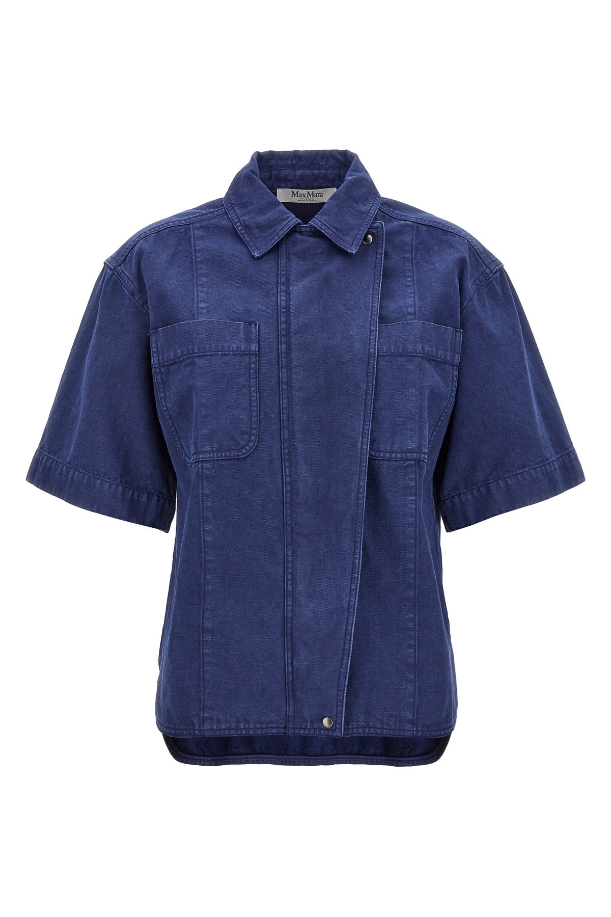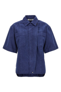 cod. GABRIEL010 'Gabriel' garment-dyed cotton canvas shirt with front zip closure, patch pockets, asymmetric bavolet, short and wide sleeves. Color: Blue Size & Fit: oversized fit Composition: 100% cotton