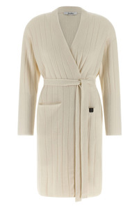 cod. 2521346019600003 Giusto' cardigan in pure cashmere yarn worked in a wide rib, robe style, pockets with leather logo patch, long sleeves with dropped shoulders, removable belt. Color: White Size & Fit: Comfort fit Composition: 100% cashmere Made in: China