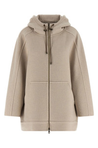 cod. 2521086035600001 'Gradi' double hand-stitched coat of pure washed cashmere, fleece style, adjustable hood with leather drawstring, front zip closure, pockets, long wide sleeves with dropped shoulder, unlined. Color: Beige Size & Fit: Cocoon fit Composition: 100% cashmere Made in: Italy PROMO CODE NOT APPLICABLE