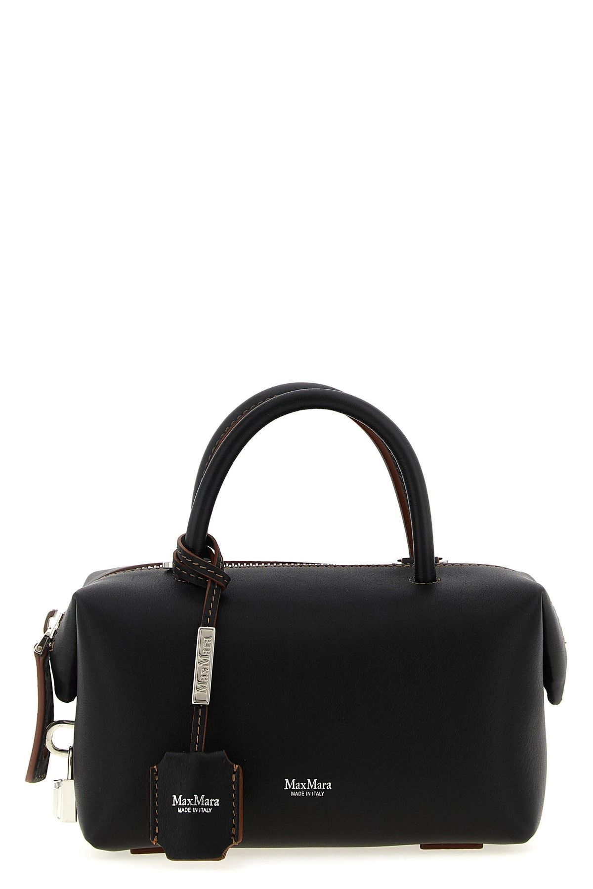 cod. 2524516141600005 Small 'Holdalls' smooth natural calf leather top case, contrast stitching, folded M-shaped sides with magnet, front embossed logo, double fixed handle, top zip closure with side metal padlock detail, adjustable and removable shoulder strap, removable keyring. Color: Black Size & Fit: W 17.5 x H 10 x D 9 cm Composition: 100% calfskin leather (Bos Taurus) Made in: Italy