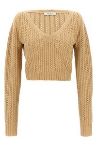 cod. IFREM003 'Ifrem' cropped wool and cashmere sweater with button closure, long cuffed sleeves. Color: Beige Size & Fit: true to size fit Composition: 70% wool 30% cachemire Made in: China