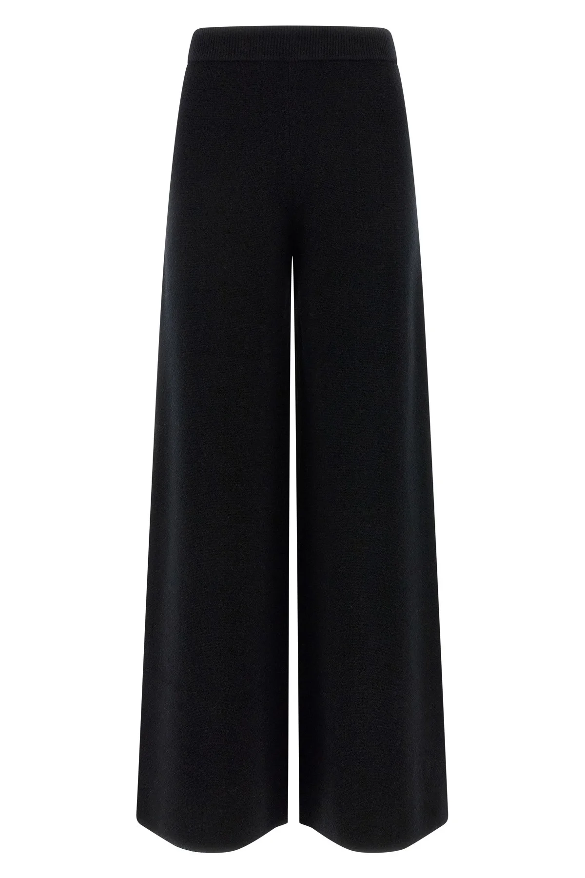 cod. 2521336012600007 'Judy' trousers in wool and cashmere yarn worked in fabric stitch, back pleats, elastic waistband, flared wide leg. Color: Black Size & Fit: true to size fit Composition: 70% wool 30% cachemire Made in: China