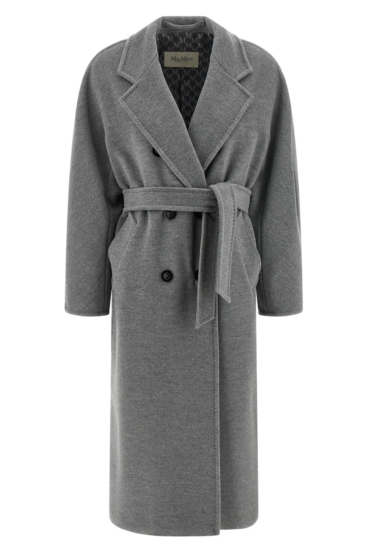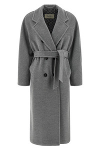 cod. 2611018011600018 'Madame - 101801 Icon Coat' wool and cashmere beaver coat finished with tailored dot, double-breasted style with front button closure, pockets, long kimono sleeves with fold-up cuffs, monogram cupro lining, removable belt. Color: Gray Size & Fit: oversized fit Composition: 90% virgin wool 10% cachemire Made in: Italy PROMO CODE NOT APPLICABLE