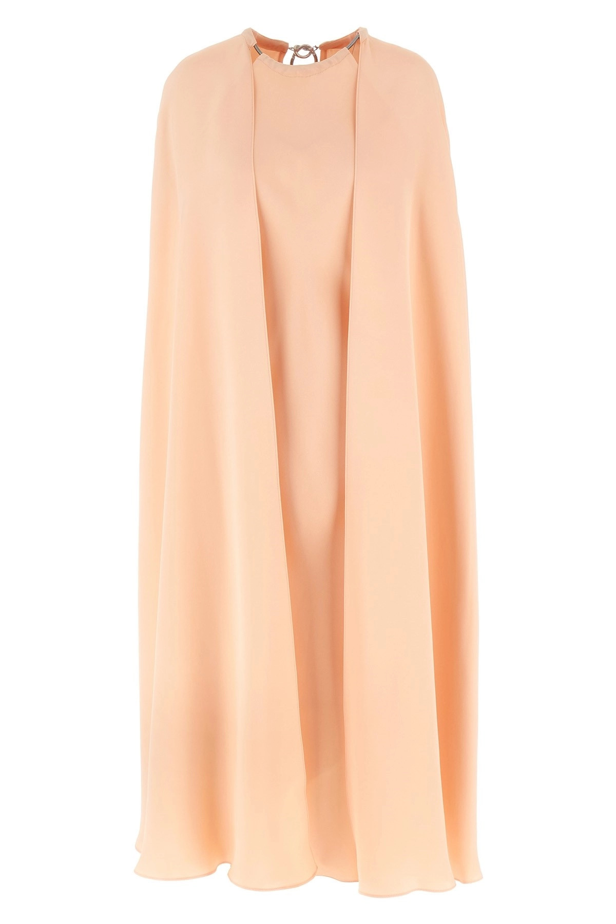 cod. 2511221084600017 Managua' silk midi dress with 'double layer' effect consisting of sheath dress with American neckline and cape with side openings, chain detail in the neckline with back closure. Color: Pink Size & Fit: True to size fit Composition: 100% silk Made in: Italy