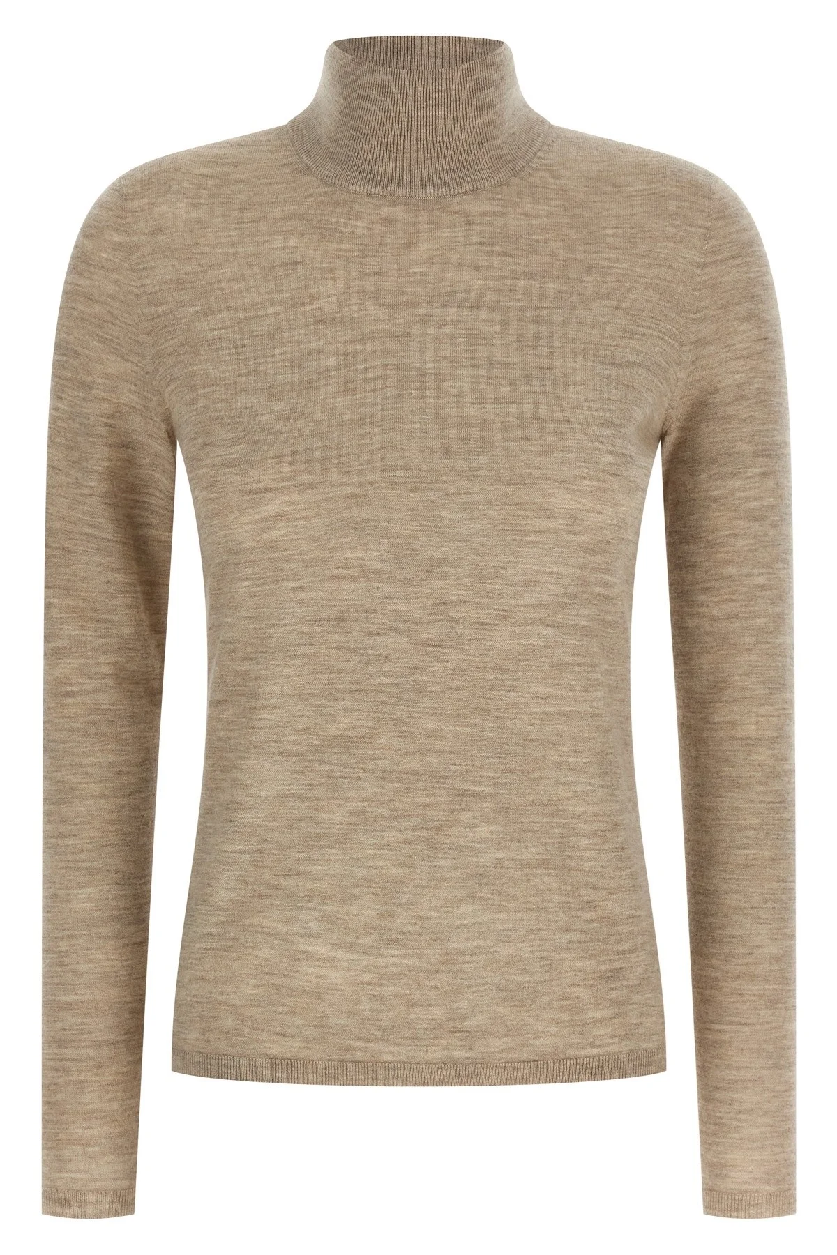 cod. 2521366072600002 'Meana' turtleneck sweater in light shaved pure cashmere melange yarn, seamless workmanship, high neck, long cuffed sleeves. Color: Beige Size & Fit: true to size fit Composition: 100% cashmere Made in: China