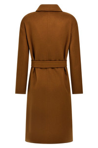 cod. 2511011101600029 'Melinda' midi coat in double cashmere fabric with robe style, long sleeves with dropped shoulder, pockets, back slit, removable belt. Color: Brown Size & Fit: Comfort fit Composition: 100% goat cashmere (Capra Hircus Hircus) Made in: Italy