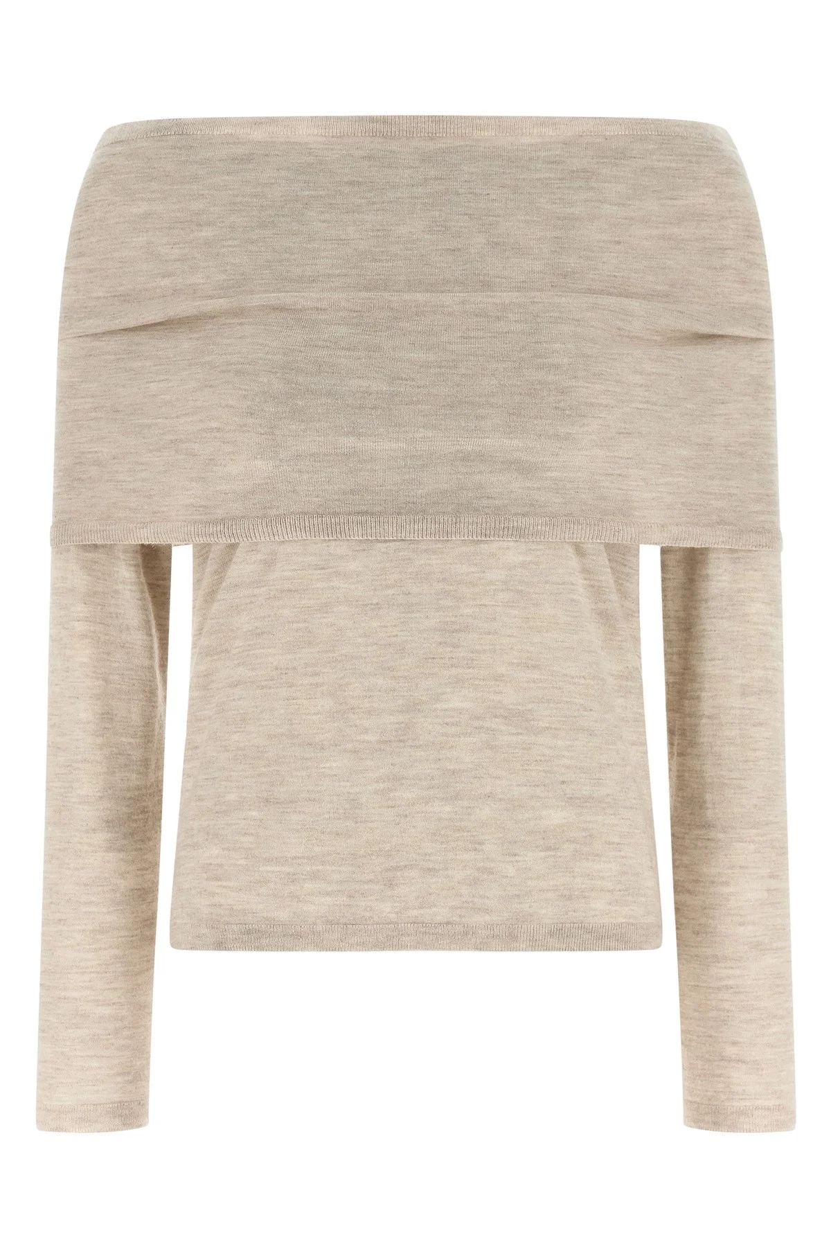 cod. 2611381011600002 'Mxmfaretra' sweater in light pure cashmere melange yarn with shaved stitch, boat neck, long cuffed sleeves. Removable matching fabric band to be placed on the shoulders. Color: Beige Size & Fit: Slim fit Composition: 100% cashmere Made in: China