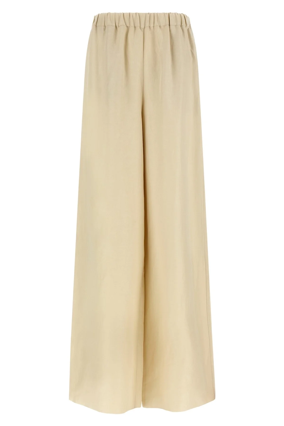 cod. 2611131122600010 'MxmOro' pants in washed linen and silk twill, wide and straight leg, elastic waistband, front French pockets. Color: Beige Size & Fit: true to size fit Composition: 63% linen, 37% silk Made in: Italy
