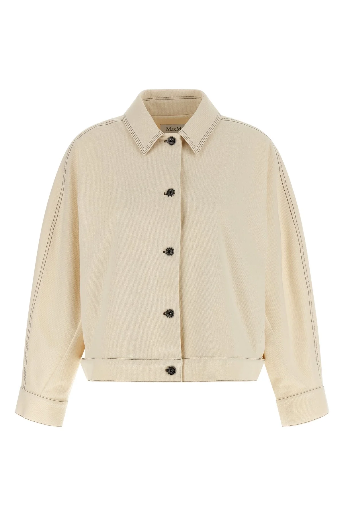cod. 2611911038600001 'MxpNettare' denim-effect cotton blend jersey overshirt, unlined, contrast stitching, shirt collar, front button closure, pockets, long kimono sleeves with cuffs. Color: Beige Size & Fit: oversized fit Composition: 57% cotton 36% polyester 7% elastane Made in: China