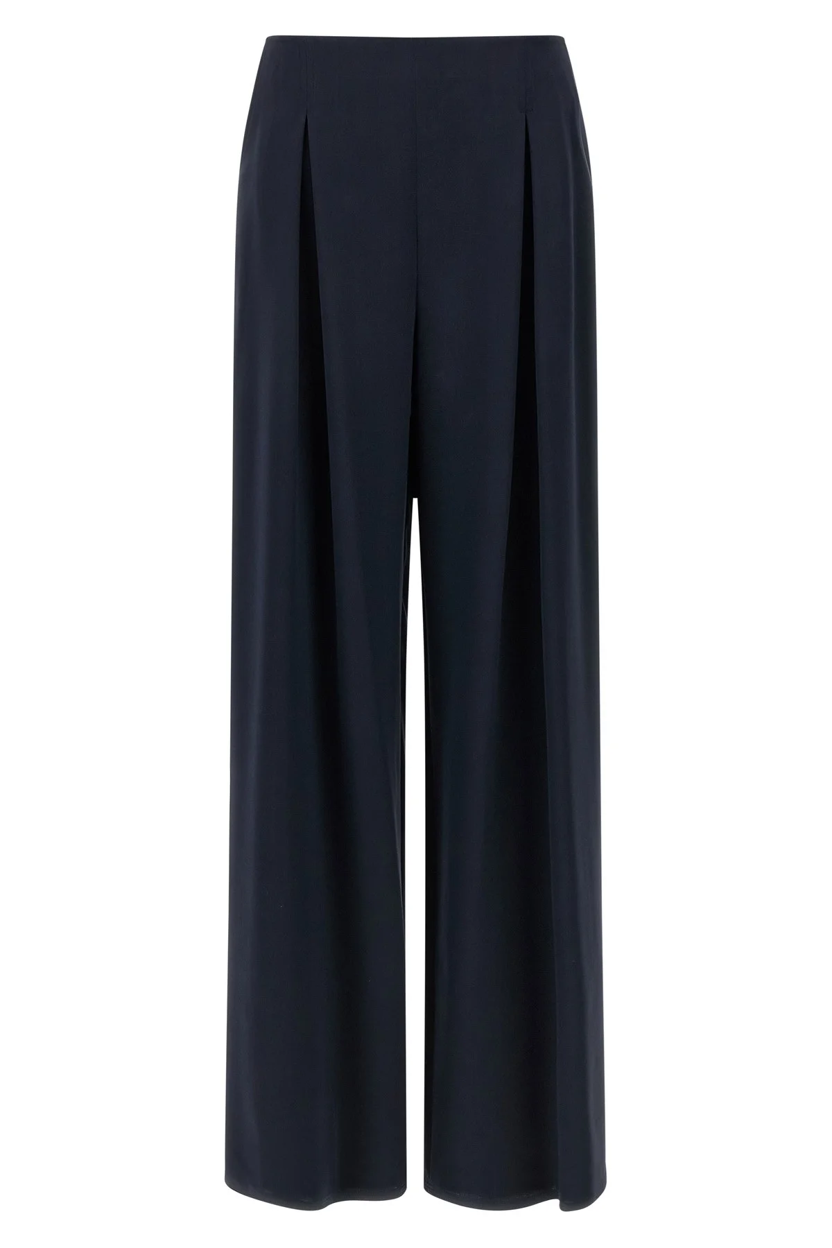 cod. 2611131018600030 'Mxppalude' silk trousers, wide and straight leg, pleats, internal elastic waistband, side zip closure, pockets. Color: Blue Size & Fit: true to size fit Composition: 91% silk, 9% elastane Made in: Italy