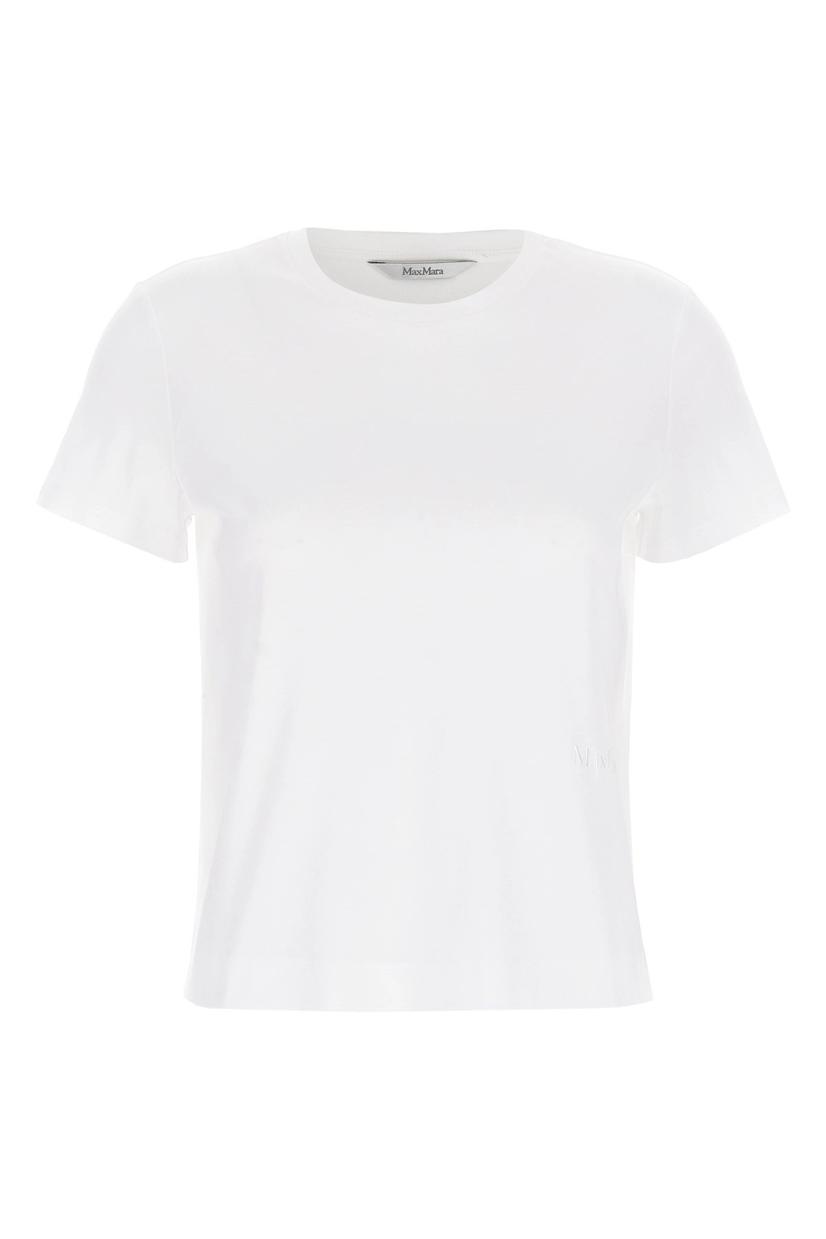 cod. 2511971018600001 'Nerina' cotton, crewneck t-shirt with short sleeves, tone-on-tone front logo embroidery. Color: White Size & Fit: True to size fit Composition: 100% cotton Made in: Romania