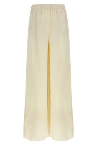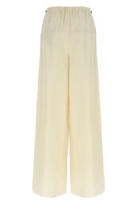 cod. 2511131112600003 'Onore' pants in washed linen and silk twill, high waist model with wide leg, elastic waistband with metal eyelets and drawstring on the sides, pockets. Color: White Size & Fit: true to size fit Composition: 60% flaxlinen 40% silk Made in: Italy