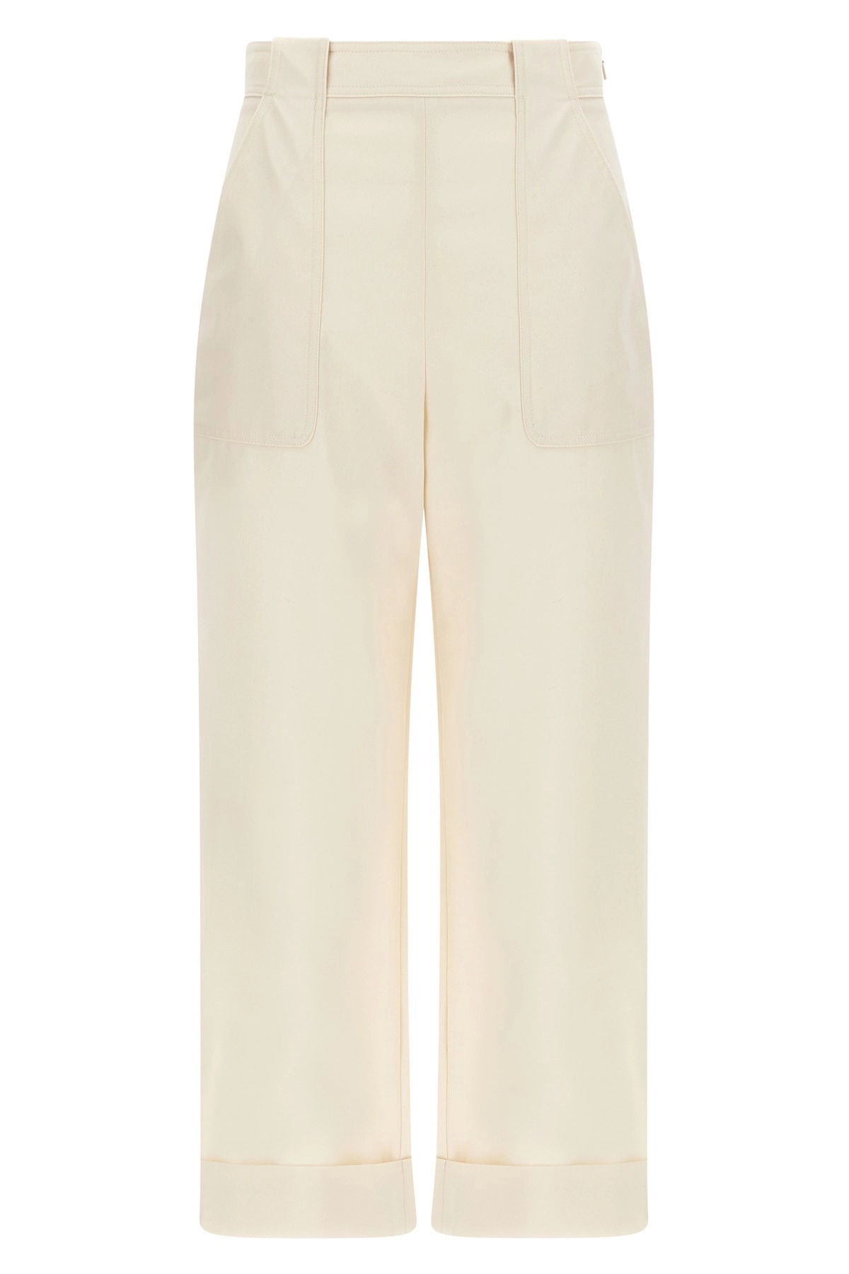 cod. 2511131061600001 High-waisted 'Palio' cotton gabardine trousers, maxi turn-up at the hem, side zip closure, pockets. Color: White Size & Fit: true to size fit Composition: 100% cotton Made in: Italy