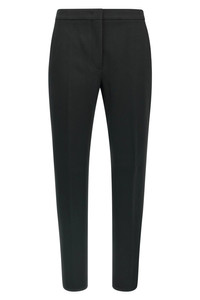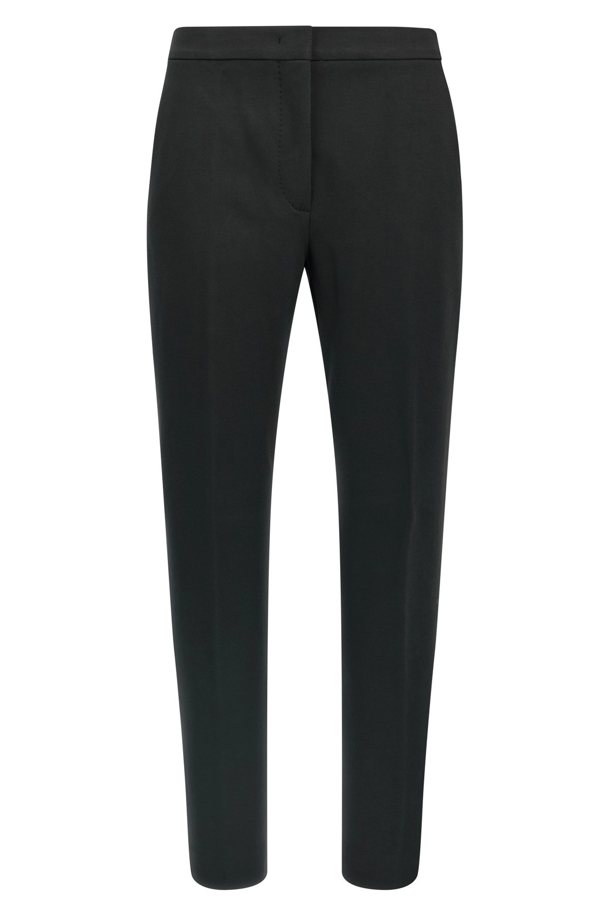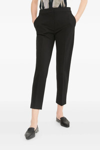 cod. 2521786021600008 'Pegno' viscose jersey pants, cropped model, medium waist, straight leg with front stretched pleat, zip and hook closure, pockets, Color: Black Size & Fit: True to size fit Composition: 84% viscose 11% polyamide 5% elastane Made in: Romania