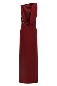 cod. 2521226024600043 Long 'Pentola' dress in cady, asymmetrical model, removable rhinestone chain shoulder strap that can be replaced with a second shoulder strap of the same fabric as the dress, zip closure, side split. Color: Bordeaux Size & Fit: True to size fit Composition: 70% triacetate 30% polyester Made in: Italy