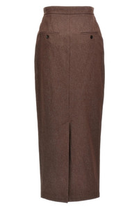 cod. 2511101013600002 Long 'Pianosa' denim-effect cotton skirt, unlined with back split, pockets, zip hook and front button closure. Color: Brown Size & Fit: Slim fit Composition: 100% cotton Made in: Italy