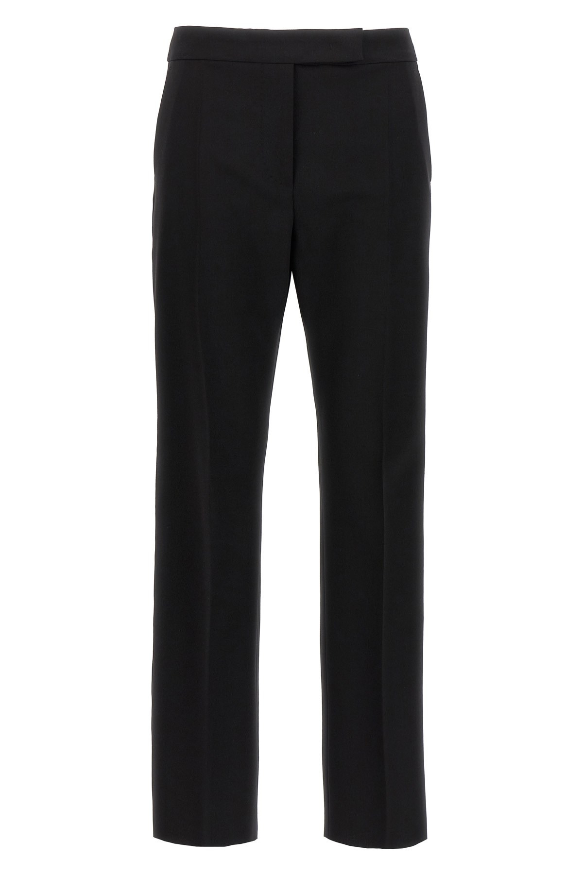 cod. RINO009 'Rino' wool blend pants with tone-on-tone satin side bands, hook and button zip closure, pockets. Color: Black Size & Fit: true to size fit Composition: 78% wv 20% wm 2% ea