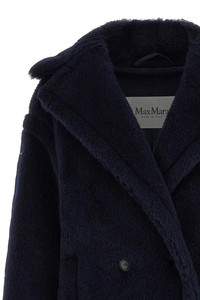 cod. 2611011011600005 Tedgirl - Teddy Bear Icon' double-breasted coat in alpaca and wool on silk base with front horn button closure, lapel collar, pockets, long sleeves with dropped shoulders, and M monogram jacquard viscose lining. Color: Blue Size & Fit: oversized fit Composition: 62% wp, 26% wv, 12% se Made in: Italy PROMO CODE NOT APPLICABLE