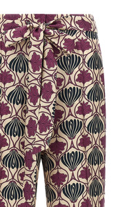 cod. 2529136022600003 'Timec' all-over print silk trousers, cropped model with straight leg, elastic waistband and zip and hook closure, removable and knotted belt at the waist, pockets. Color: Purple Size & Fit: True to size fit Composition: 100% silk Made in: Romania