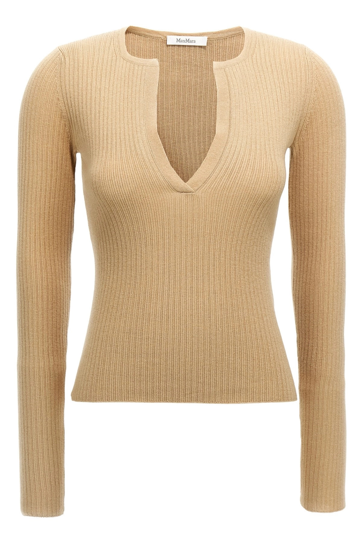 cod. URLO002 'Urlo' silk and cashmere sweater with V-neck, long sleeves. Color: Beige Size & Fit: true to size fit Composition: 55% silk 45% cachemire Made in: Romania
