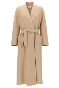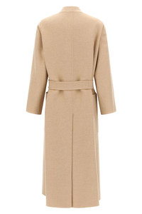 cod. 2511011071600002 Long 'Vezzoso' coat in double drap of pure albino camel, robe model, pockets, long sleeves, back split, removable belt. Color: Beige Size & Fit: true to size fit Composition: 100% camel wool Made in: Italy