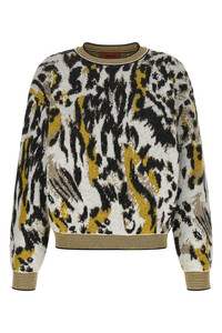 cod. DS25WN07BK01C1SM9SY Animalier jacquard alpaca blend sweater, crew neck, long cuffed sleeves and dropped shoulder. Color: Multicolor Size & Fit: Boxy fit Composition: 53% polyamide 29% alpaca wool 13% wool 5% cotton Made in: Italy