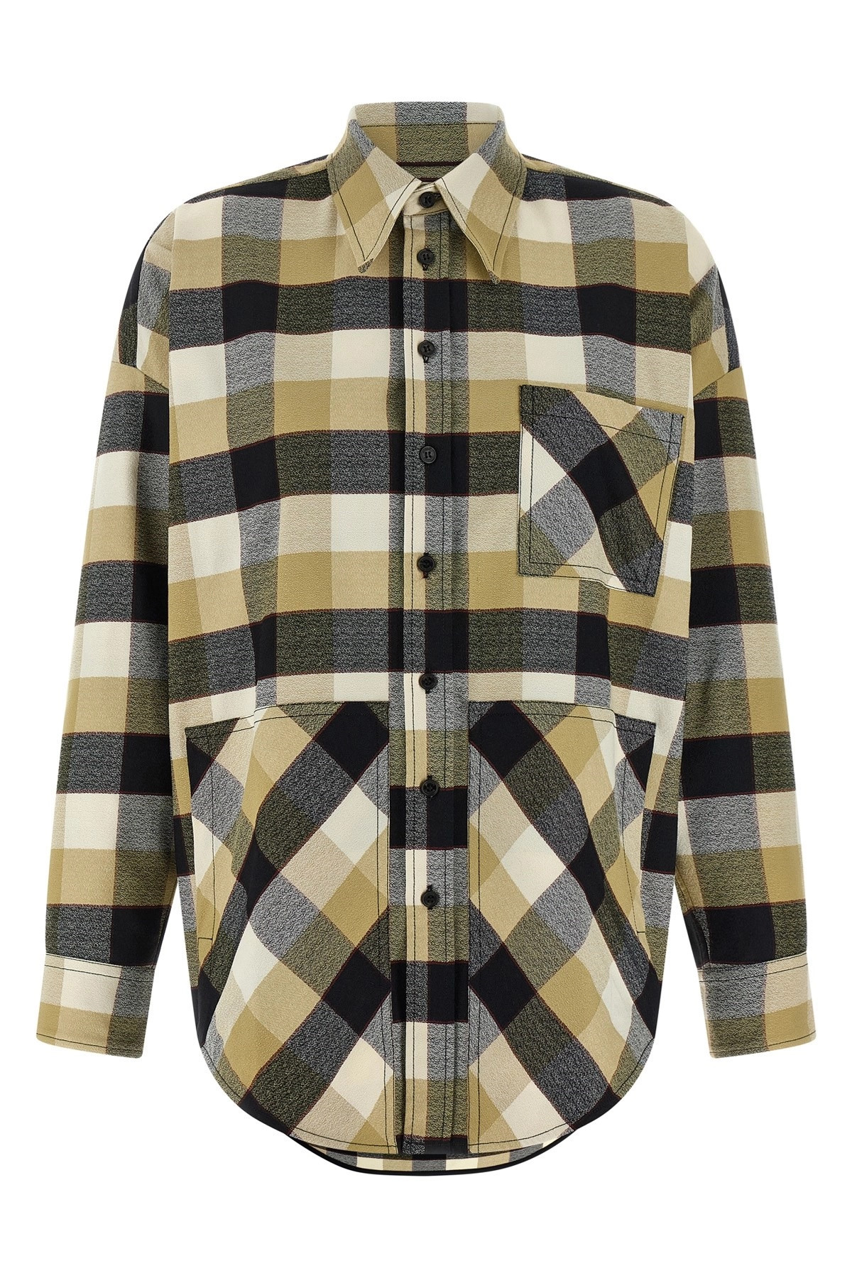 cod. DS25WJ0PBW00Z6S01JC All-over check fabric shirt, front button closure, pockets, long sleeves with cuffs and dropped shoulders. Color: Beige Size & Fit: oversized fit Composition: 100% polyester Made in: Italy