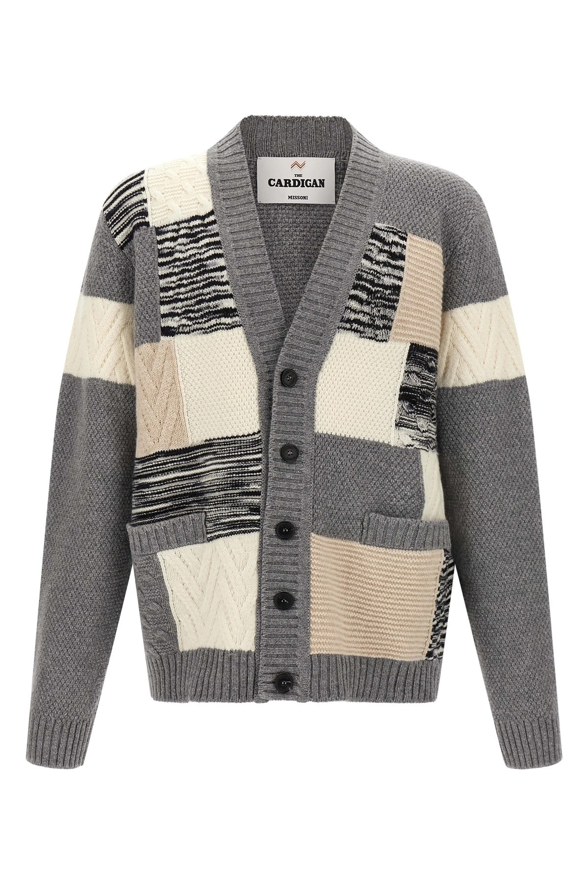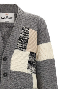 cod. US25WM0ABK01CZS01I3 Wool cardigan, patchwork effect inlays, V-neck, front button closure, long cuffed sleeves. Color: Beige Size & Fit: True to size fit Composition: 100% wool Made in: Italy