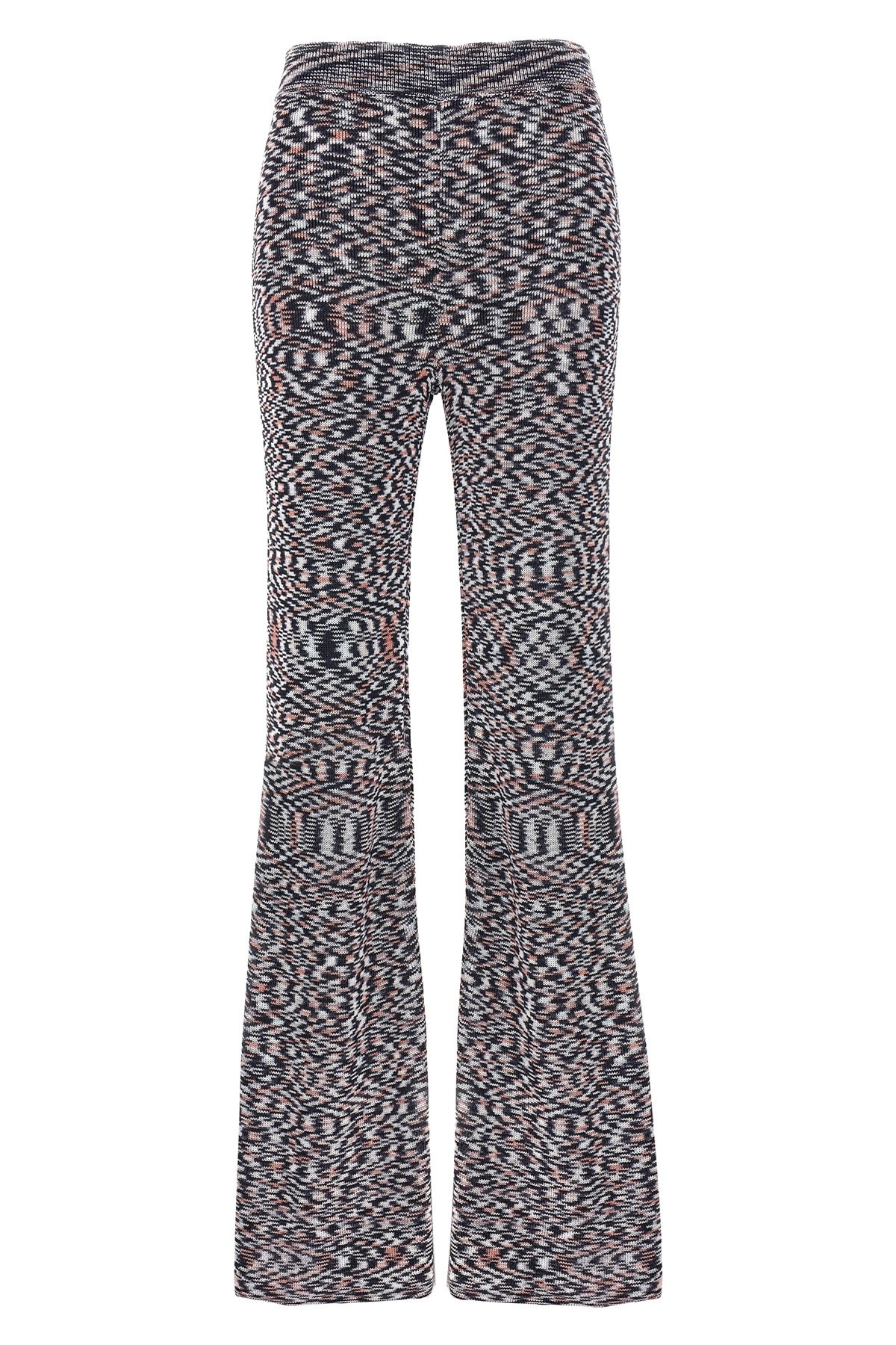 cod. DS24SI0MBK033SF705S Patterned viscose blend trousers with elastic waistband, flared leg. Color: Multicolor Size & Fit: True to size fit Composition: 65% viscose, 35% polyamide