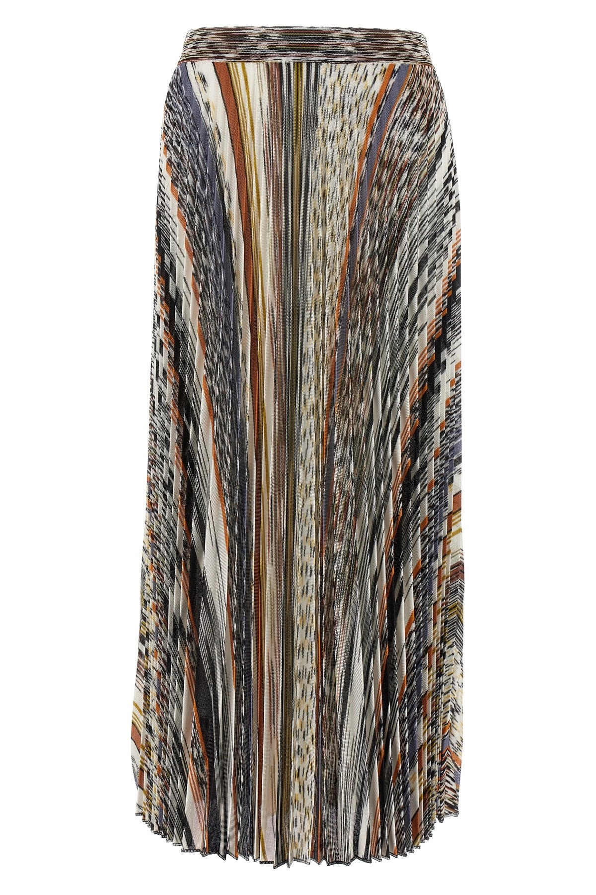cod. DS25WH0DBK01CRFM147 Pleated knit midi skirt, striped knit, elastic waistband. Color: Multicolor Size & Fit: True to size fit Composition: 89% viscose 9% polyester 1% elastane Made in: Italy