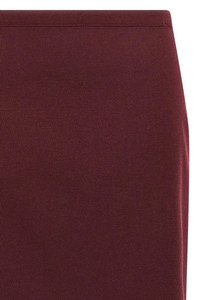 cod. MG2331SOOO17HJF041F Double layer virgin wool midi skirt with front logo intarsia and asymmetric cotton poplin lining, longuette model, slit and back zip closure. Color: Bordeaux Size & Fit: true to size fit Composition: 100% virgin wool Made in: Italy PROMO CODE NOT APPLICABLE