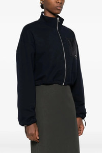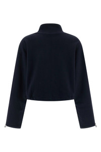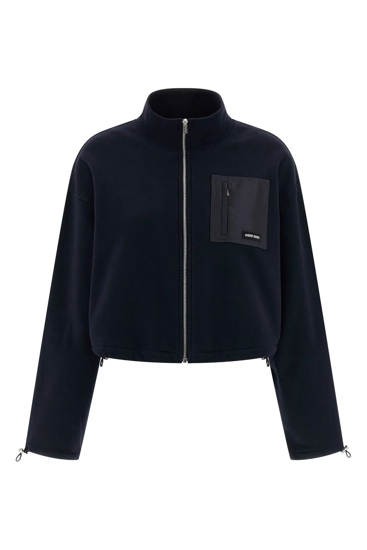 cod. MJLA09SOOO18TPF0008 Brushed cotton sweatshirt, crop model, tone-on-tone nylon pocket with zip and logo patch applied, high neck, front zip closure, long wide sleeves with drawstring on the cuffs and dropped shoulders, drawstring on the hem. Color: Blue Size & Fit: oversized fit Composition: 100% cotton Made in: Italy PROMO CODE NOT APPLICABLE