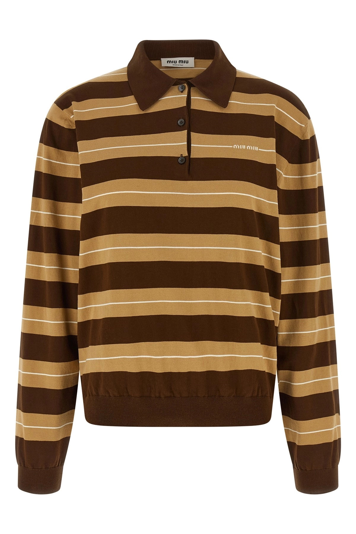 cod. MMLB32SOOO17NQF0TDB Striped cotton knit polo shirt with collar, three button closure, front logo, long sleeves. Color: Multicolor Size & Fit: True to size fit Composition: 100% cotton Made in: Italy PROMO CODE NOT APPLICABLE