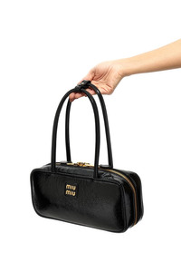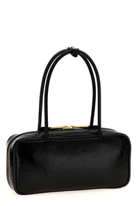 cod. 5BB173VOLOADNTF0002 Top case bag in glossy paint, front metal logo, zip closure, double handle. Color: Black Size & Fit: W 28.5 x H 12.5 x D 8 cm Composition: 100% lamb leather (Ovis aries) Made in: Italy